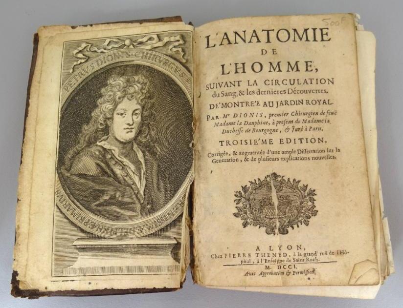 SujetCe livre est adressé au Roy « Vôtre Majesté ». Il regroupe les leçons d’anatomie et de chirurgie que Pierre Dionis donnait au « Jardin du Roi » ou « Jardin des herbes médicinales », une institution royale créée à Paris en 1635. Le « Jardin du Roi »est devenu le Jardin des Plantes et le Muséum d’histoire naturelle en 1793. Le livre est écrit pour ceux qui ne peuvent assister à ses cours. Des cours donnés à un public qui y assiste librement. Dionis les donne en français et non pas en latin, ils attirent un public nombreux. Leur succès tient essentiellement à l’investissement du chirurgien dans la défense des idées de William Harvey (1578-1657) concernant la circulation sanguine, alors que la Faculté de médecine de Paris conteste cette découverte. Ces leçons ne dépendent pas de la Faculté de médecine de Paris mais relèvent directement de l’autorité du Roi qui rémunère les orateurs. Le Roi manifeste ainsi clairement sa volonté de s’opposer au monopole de la Faculté. Dionis signe : « le plus humble, très obéissant et très fidèle serviteur et sujet ».