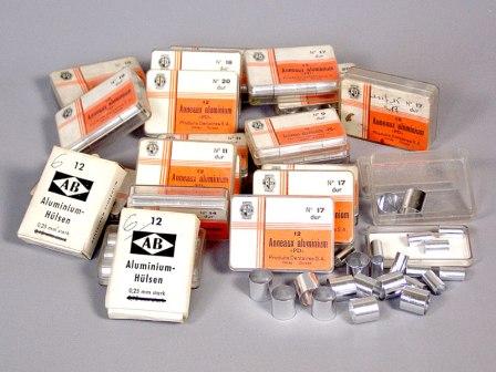 Tubes en aluminium de diamètres différents notés 7, 8, 10 , 15, 17, 19 et 20. Ces tubes sont présentés dans des boîtes (6 à 12 par boîte).