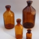 Ces deux flacons de verre ambré sont hermétiquement fermés avec des bouchons à ailette.