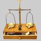 Bol en verre de section polygonale muni de deux anses et surmonté d’un couvercle conique en métal se terminant par un embout bouche-nez