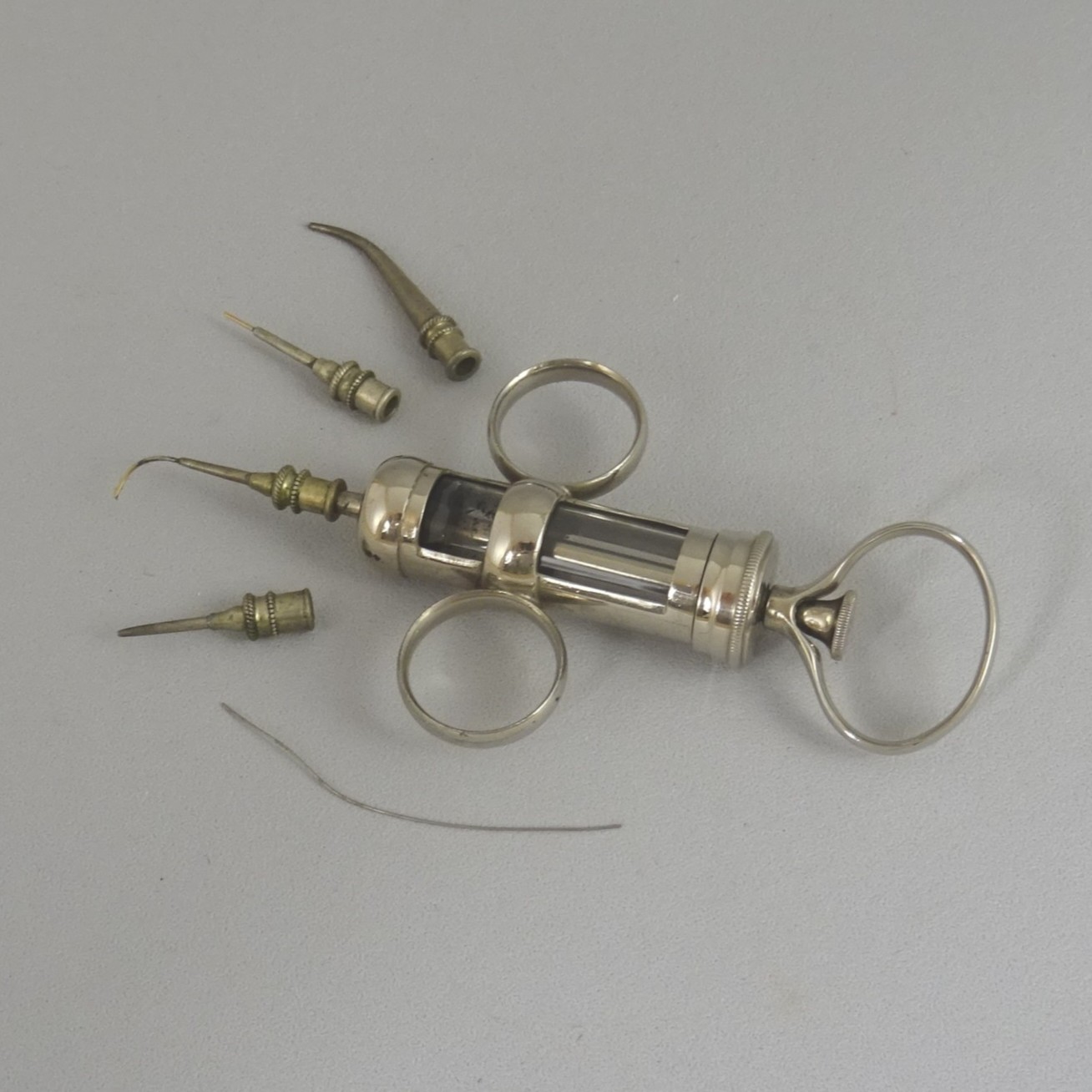 Cette seringue était utilisée en ophtalmologie pour les pathologies des voies lacrymales (obstruction des voies lacrymales et dacryocystite - infection du sac lacrymal)