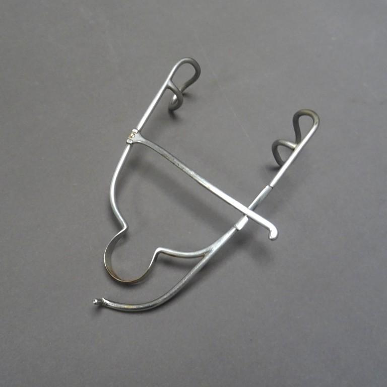 Cet instrument est en forme d’étrier dont les deux extrémités se terminent par deux valves fenêtrées, et d’une tige transversale à crémaillère permettant leur blocage. Une tige accessoire permet sa fixation.