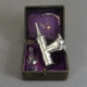 – deux trocarts: dont un très fin, dans son étui métallique; l’autre à l’extrémité pointue à deux pans, inclus dans un tube métallique à virole dont une des extrémités se termine par un bouchon à anneau.