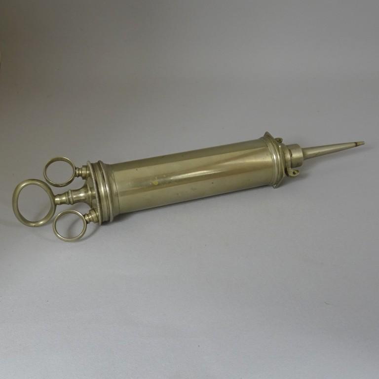 Cette seringue permettait des lavages vésicaux dans plusieurs pathologies de la vessie, notamment infectieuses. L'embout distal était connecté à une sonde urétrale.