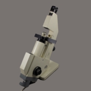 Fabriqué en aluminium et plastique, peint en beige, l’appareil est muni d’un éclairage électrique et d’un système de marquage à trois pointes actionné par un bouton-poussoir placé sous l’oculaire. Une molette permet la rotation de l’oculaire et du réticule, gradué en degrés.