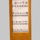 Palette cartonnée dans un cadre en bois. Ce cadre est muni d’une poignée. Sur la document, des paragraphes de texte sont écrits avec des caractères de différentes tailles (0,7 à 0,1 cm environ)