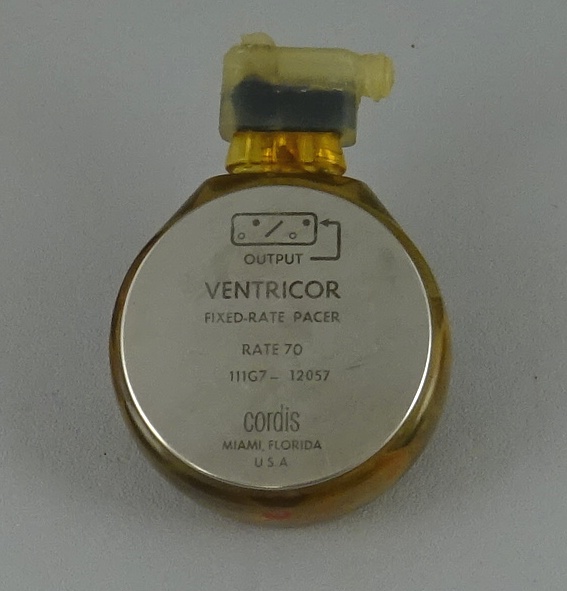 On voit les inscriptions : output +-/Ventricor/Fixed Rate Pacer/Rate 70/111G7 12057/CORDIS/Miami Florida USA/