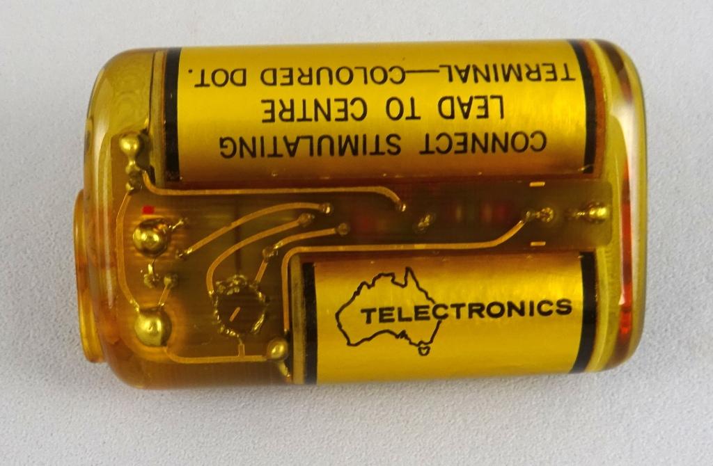 On voit les inscriptions : Telectronics / Model P7 / microcircuit fixed rate / Do not autoclave Maximum temperature sterilising 45 °C / Ser 5369