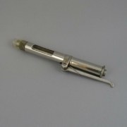 - Un corps de seringue entièrement métallique comprenant un piston central de petit diamètre, son ressort et son levier.