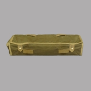 Cette trousse est composée d’une boite en acier inoxydable comprenant divers instruments de chirurgie. Une sacoche en forte toile de couleur kaki munie d’attaches l’enveloppe.